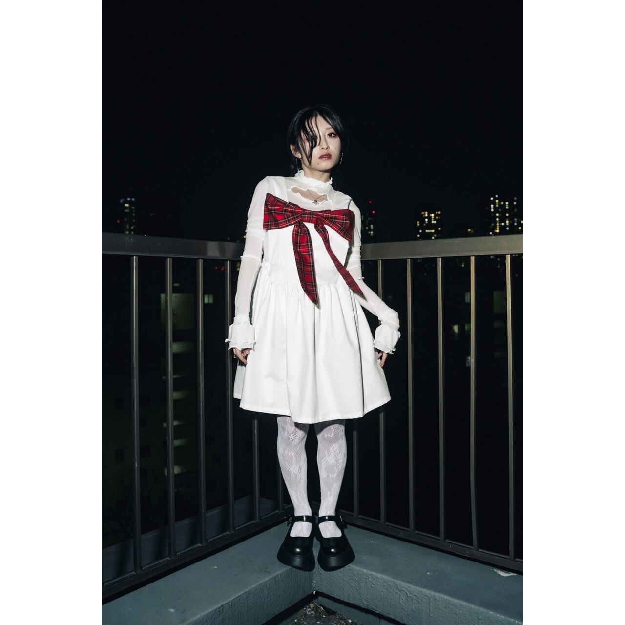 Front ribbon sleeveless onepiece (Color Ribbon / Short丈)