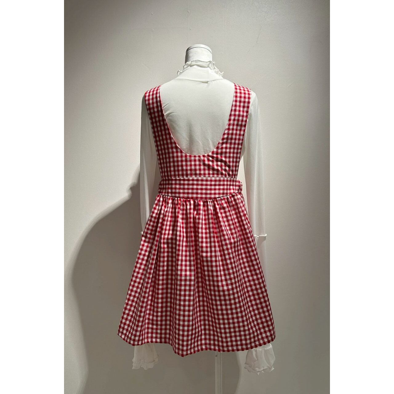 Front ribbon sleeveless onepiece (Gingham / Short丈)